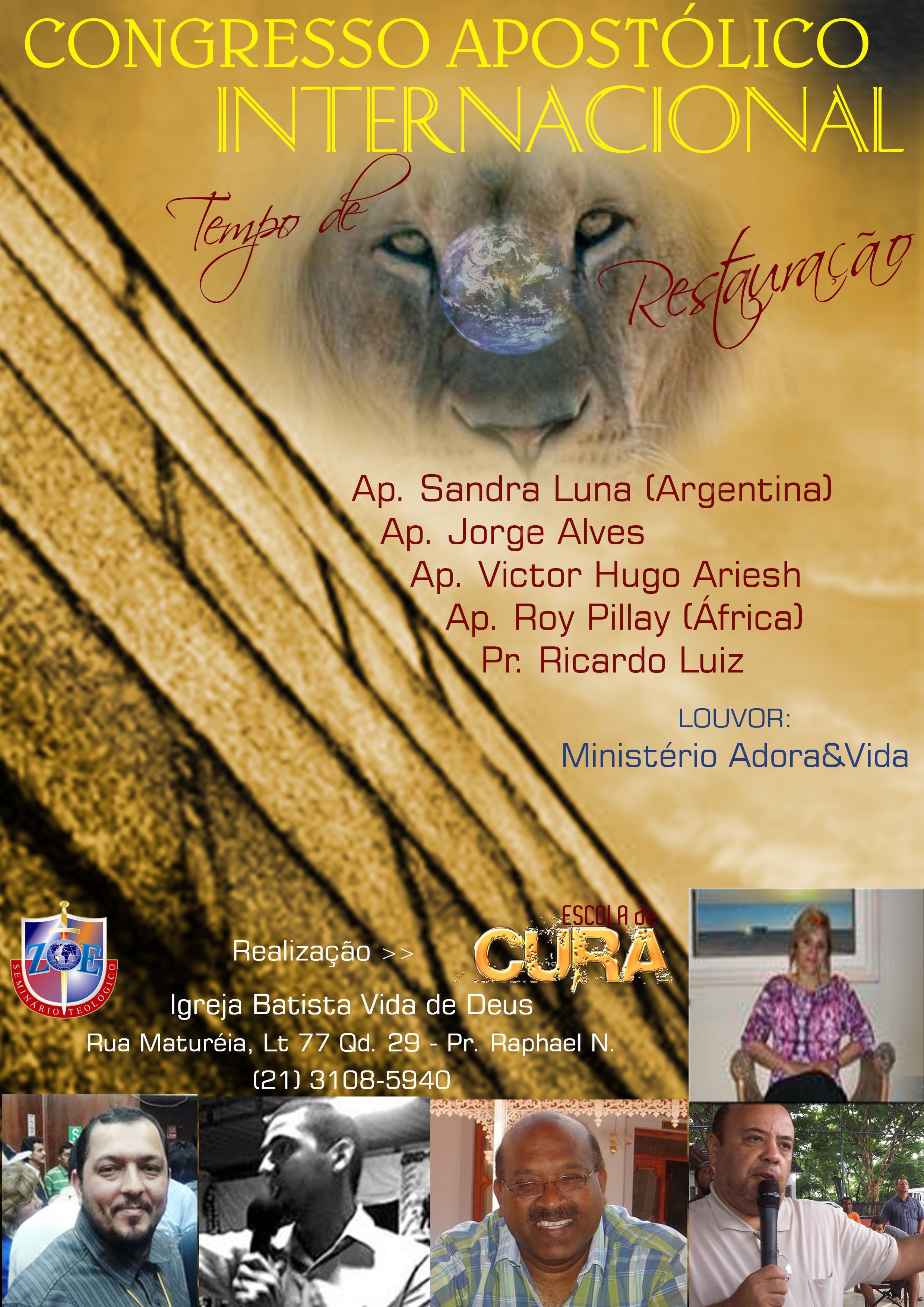 I will be with Ps Ricardo Luiz Barbosa on Sunday morning 17 April 2011 in Rio de Janeiro where I will share with Apa. Sandra Luna from Argentina and other servants of the Lord.